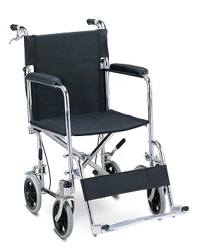 Chromed steel frame, fixed armrest,detachable footrest,drop back handle, solid castor,solid rear wheel