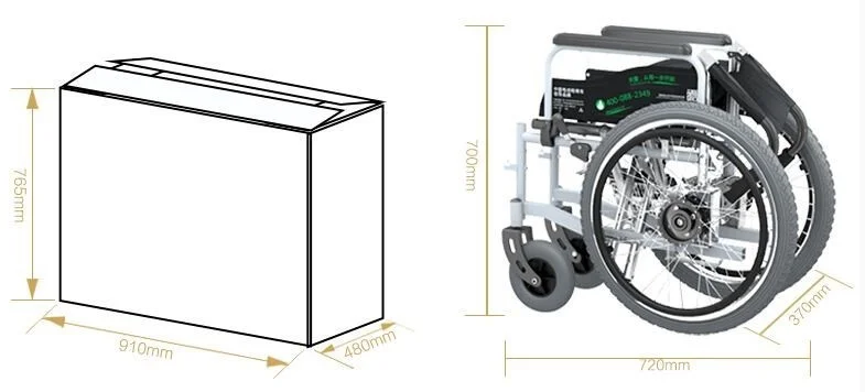 Electrical folding wheelchair, quick-removal battery box and high strength steel body. The battery box can be taken away from the body for recharging and the controller can move around.