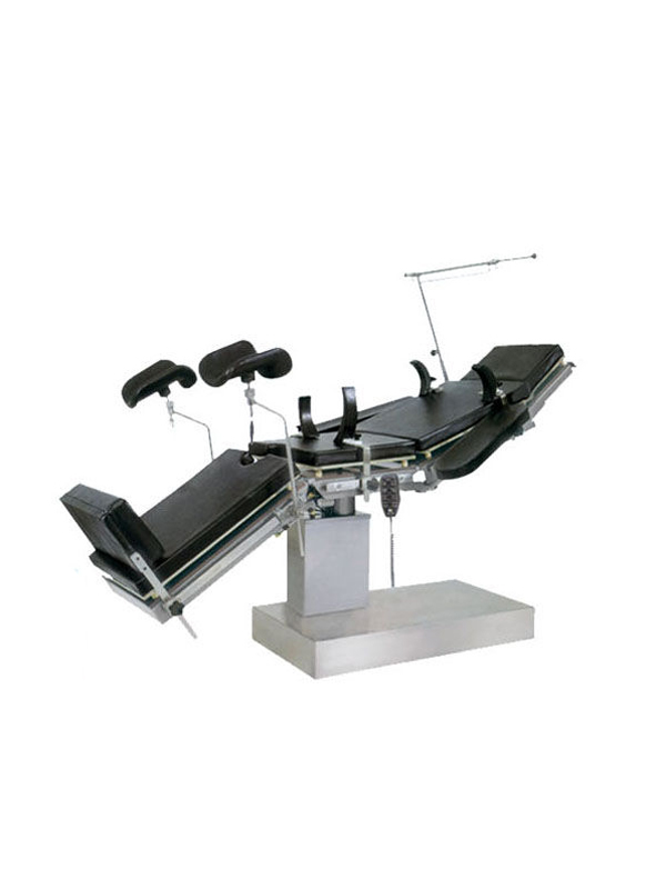 Five Section S.S. Top with large perineal cutout for drainage tray, built in kidney bridge. The improved Hydraulic System provides smooth movement and the speed of lowering the table is permanently set.
